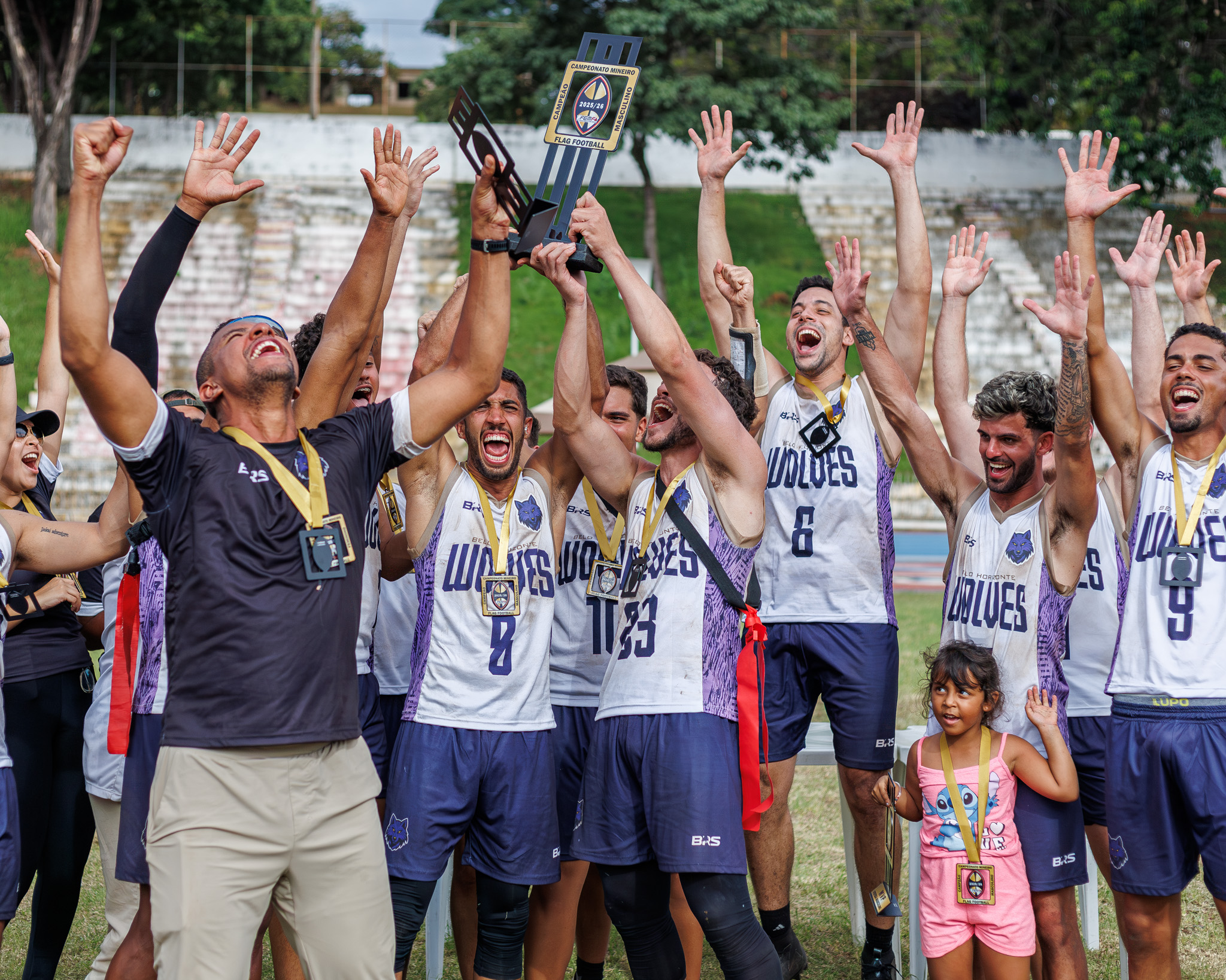 Pela primeira vez, um mesmo time conquistou os títulos masculino e feminino na mesma edição, protagonizando uma dobradinha inédita. O BH Wolves, projeto recente do flag football belo-horizontino, dominou a competição e confirmou sua rápida ascensão ao topo do cenário estadual, pintando Minas Gerais de roxo.
